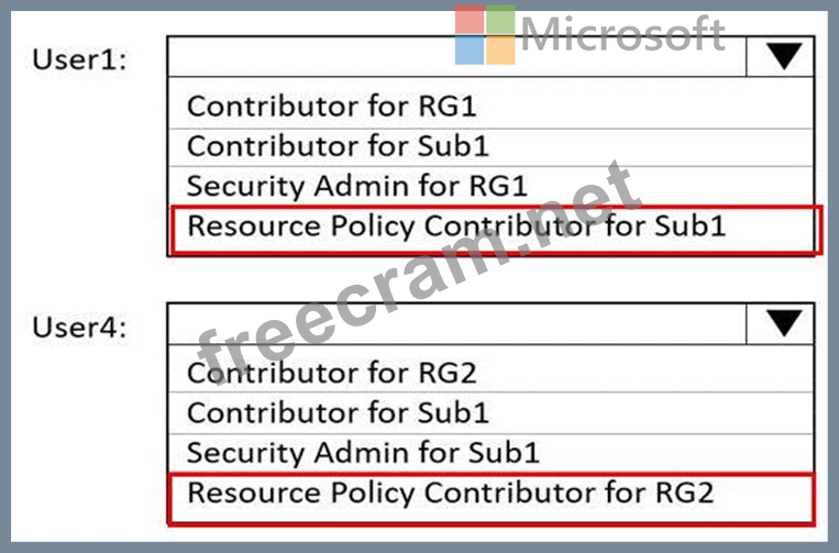 Which role should you assign to each user? To answer, select the appropriate options in the answer area.
