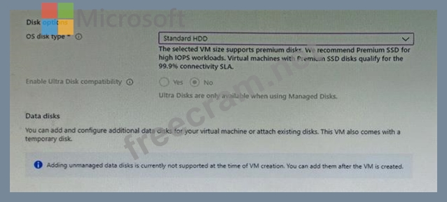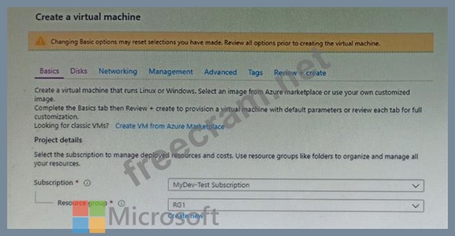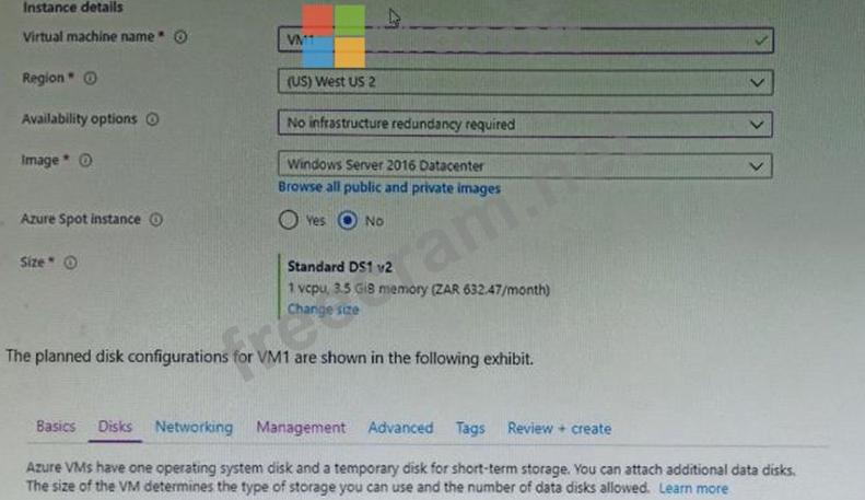 You plan to create an Azure virtual machine named VM1 that will be configured as shown in the following exhibit.