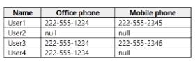 The tenant contains the users shown in the following table.