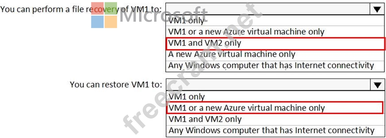 Question 44: You have an Azure virtual machine named VM1 and a Recovery S...