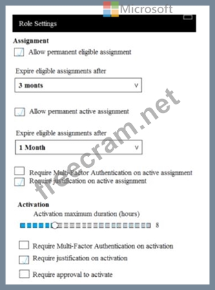 From Azure Active Directory (AD) Privileged Identify Management, you configure the Role settings for the Owner role of an Azure subscription as shown in the following exhibit.
