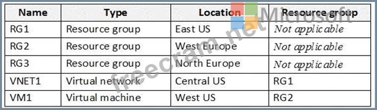 You have an Azure subscription named Subscription1 that contains the resources shown in the following table.