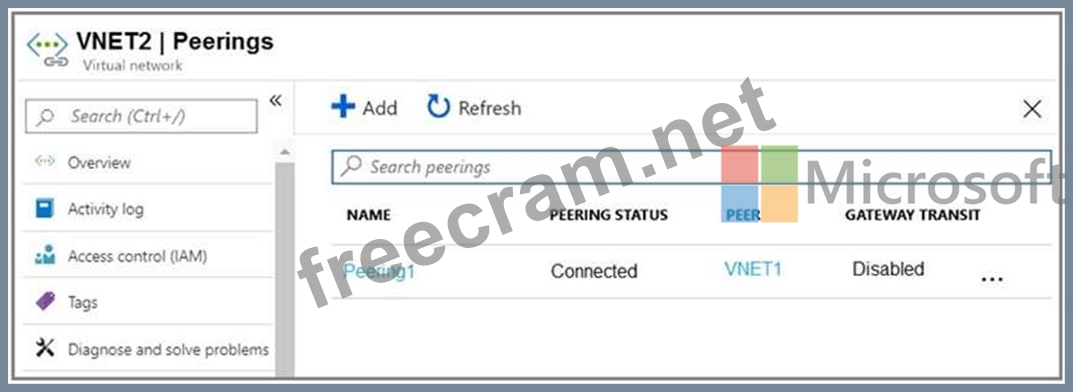 Peering for VNET2 is configured as shown in the following exhibit.