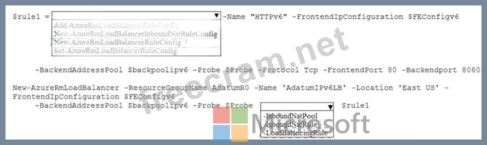 How should you complete the Azure PowerShell script? To answer, select the appropriate options in the answer area.