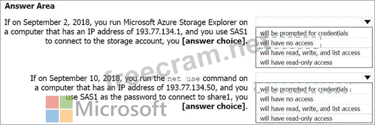 Question 378: You have an Azure Storage account named storage1. You have a...