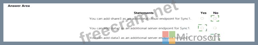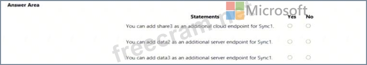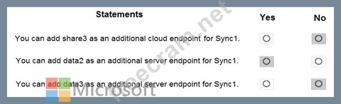 You create an Azure file sync group named Sync 1 and perform the following actions: