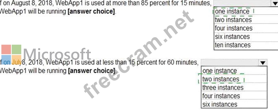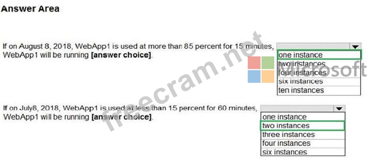 You create an Azure web app named WebApp1. WebApp1 has the autoscale settings shown in the following exhibit.