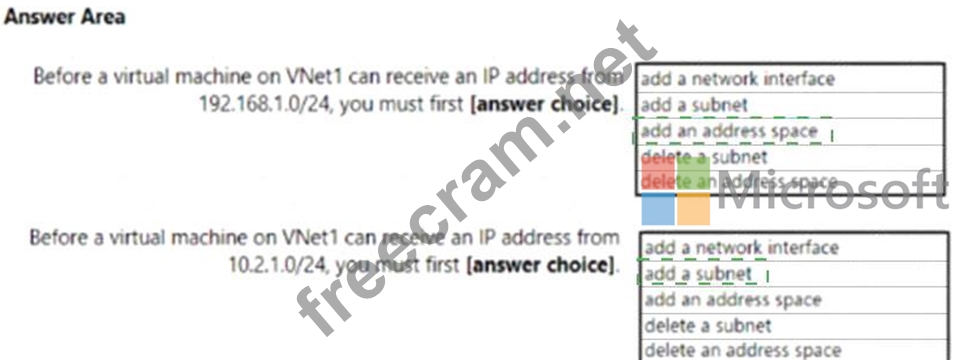 You have a virtual network named VNet1 that has the configuration shown in the following exhibit.