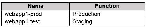 Webapp1 has the deployment slots shown in the following table.