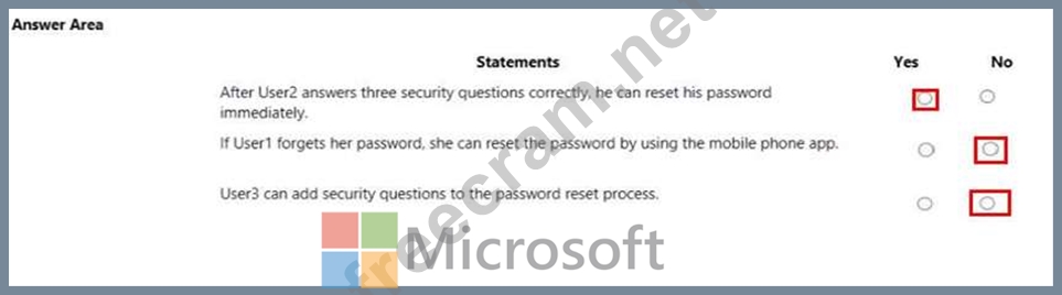 User3 is User Administrator, With a two-gate policy, administrators don't have the ability to use security questions.