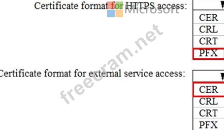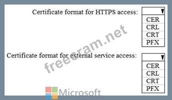 In which formats should you upload the certificate? To answer, select the appropriate options in the answer area.