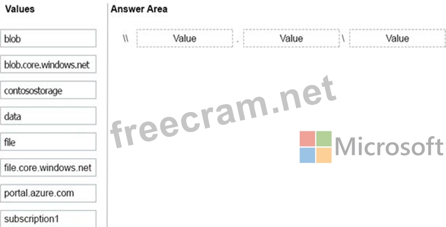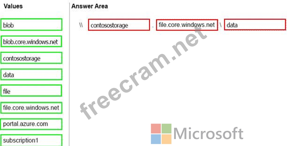 You create an Azure Storage account named contosostorage, and then you create a file share named data.