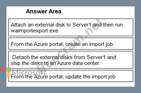 3 - Detach the external disks from Server1 and ship the disks to an Azure data center.