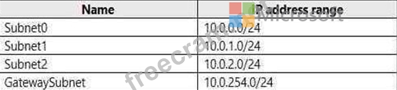 You have an Azure subscription that contains a virtual network named VNet1. VNet1 uses an IP address space of 10.0.0.0/16 and contains the subnets in the following table.