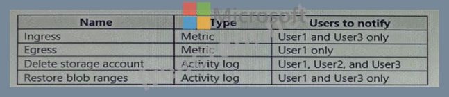You need 1 alert rule per 1 signal (1xIngress, 1xEgress, 1xDelete storage account, 1xRestore blob ranges).