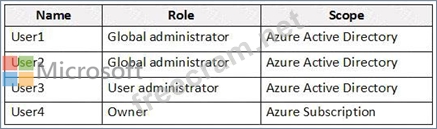You have an Azure subscription that contains the following users in an Azure Active Directory tenant named contoso.onmicrosoft.com: