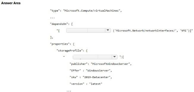 How should you complete the template? To answer, select the appropriate options in the answer area.