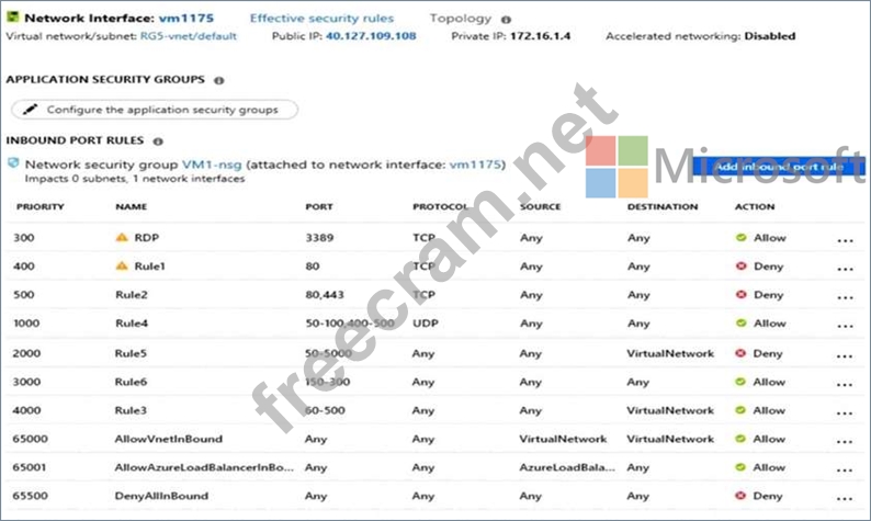 Explanation Rule 2 is blocking HTTPS access (port 443) and has a priority of 500. Changing Rule 5 (ports 50-5000) and giving it a lower priority number will allow access on port 443. Note: Rules are processed in priority order, with lower numbers processed before higher numbers, because lower numbers have higher priority. Once traffic matches a rule, processing stops. References: https://docs.microsoft.com/en-us/azure/virtual-network/security-overview