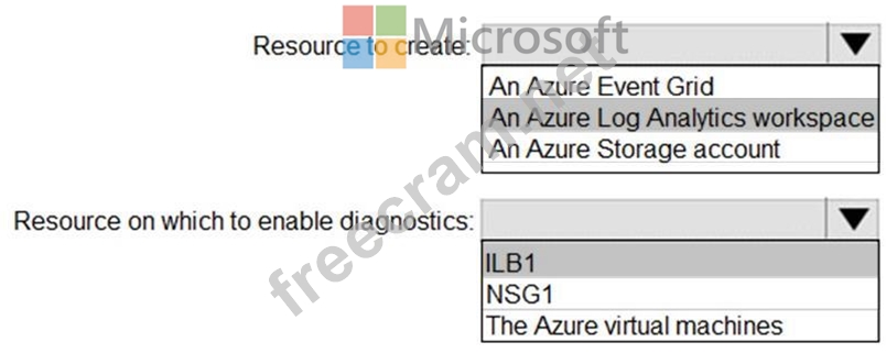 In the Azure portal you can set up a Log Analytics workspace, which is a unique Log Analytics environment with its own data repository, data sources, and solutions Box 2: ILB1 References: