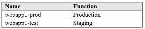 You have an Azure web app named App1. App1 has the deployment slots shown in the following table: