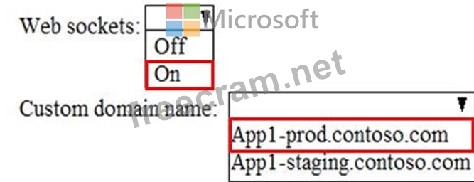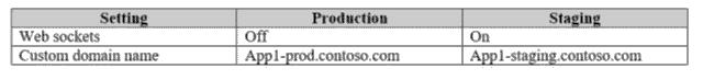 You have an Azure web app named App1 that has two deployment slots named Production and Staging. Each slot has the unique settings shown in the following table.