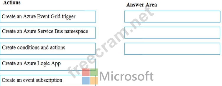 You need to receive an email message whenever a resource is created in or deleted from a resource group. Which three actions should you perform in sequence? To answer, move the appropriate actions from the list of actions to the answer area and arrange them in the correct order.