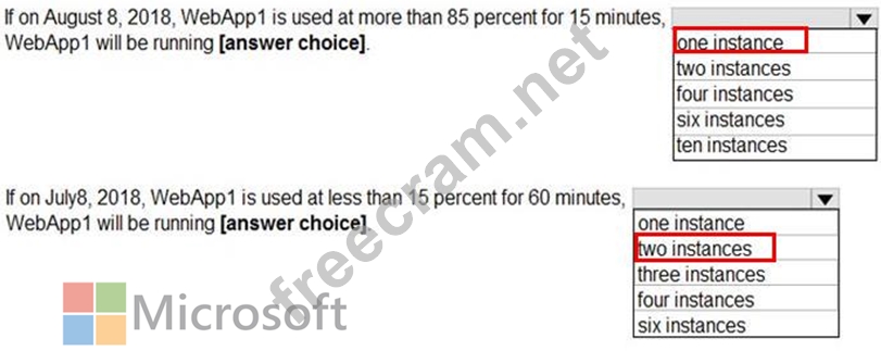 You create an Azure web app named WebApp1. WebApp1 has the autoscale settings shown in the following exhibit.