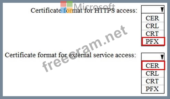 In which formats should you upload the certificate? To answer, select the appropriate options in the answer area.