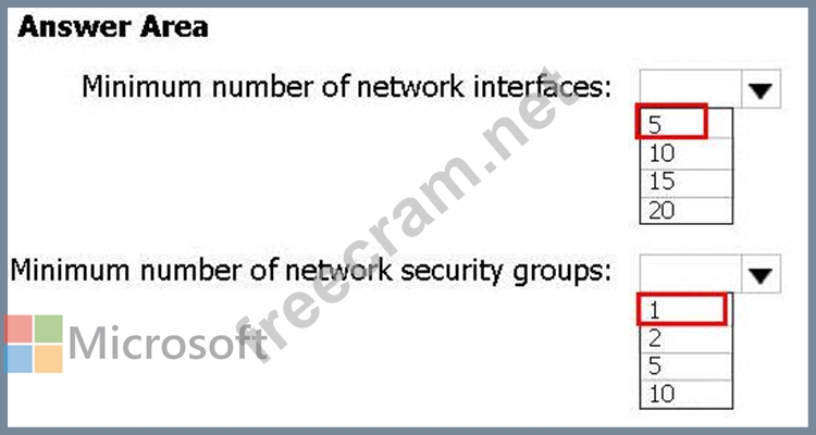 What is the minimum number of network interfaces and network security groups that you require? To answer, select the appropriate options in the answer area.