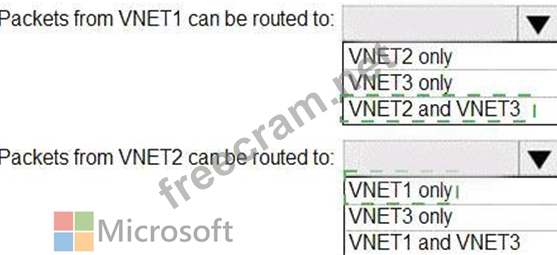 How can packets be routed between the virtual networks? To answer, select the appropriate options in the answer area.