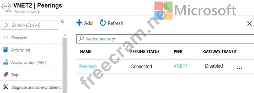 Peering for VNET2 is configured as shown in the following exhibit.