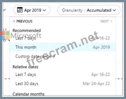 In cost analysis blade of Azure, you can see all the detail for custom time span. You can use this to determine expenditure of last few day, weeks, and month. Below options are available in Cost analysis blade for filtering information by time span: last 7 days, last 30 days, and custom date range. Choosing the first option (last 7 days) auditors can view the costs by time span.