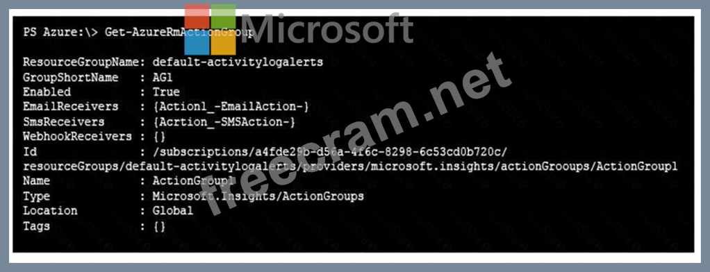 The Alert1 action group is configured as shown in the following exhibit.