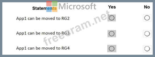 App1 present in RG1 and in RG1 there is no lock available. So you can move App1 to other resource groups, RG2, RG3, RG4.