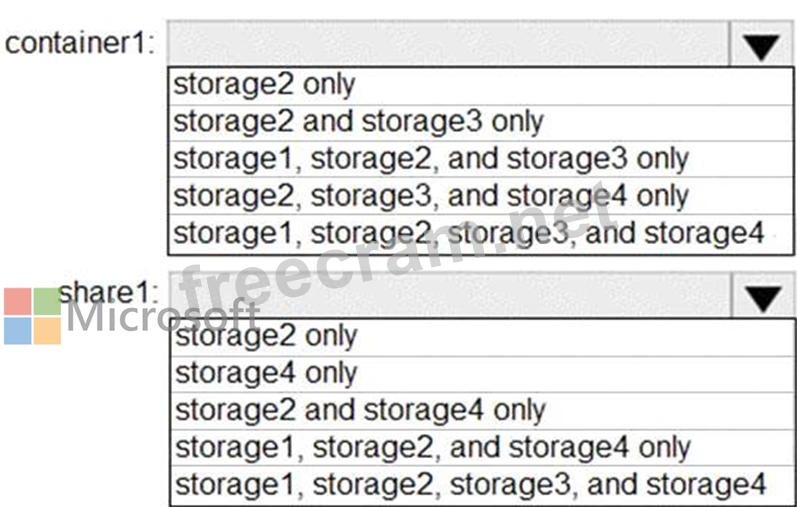 Question 58: You need to create container1 and share1. Which storage acco...