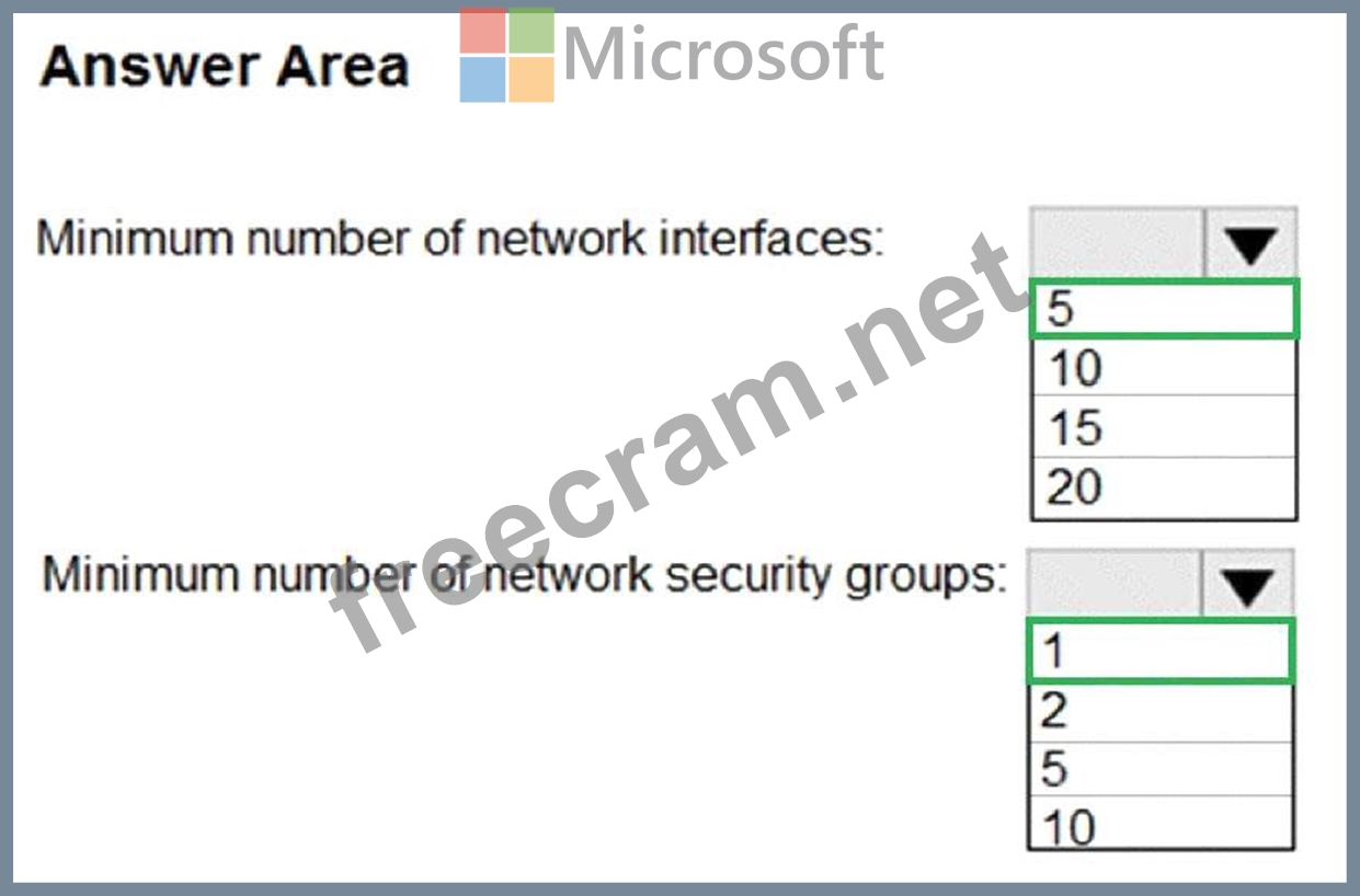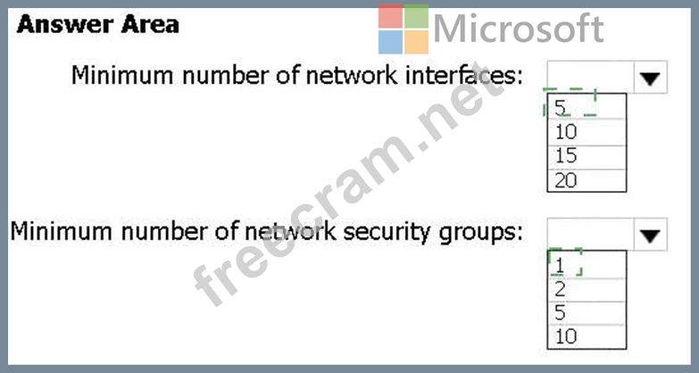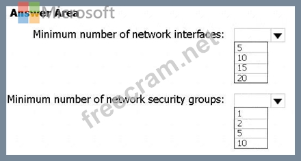 What is the minimum number of network interfaces and network security groups that you require? To answer, select the appropriate options in the answer area.