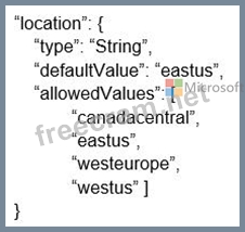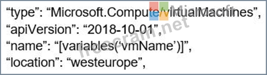 You have an Azure Resource Manager that is used to deploy an Azure virtual machine. Template1 contains the following text: The variables section in Template1 contains the following text: "location": "westeurope" The resources section in Template1 contains the following text: You need to deploy the virtual machine to the West US location by using Template1. What should you do?
