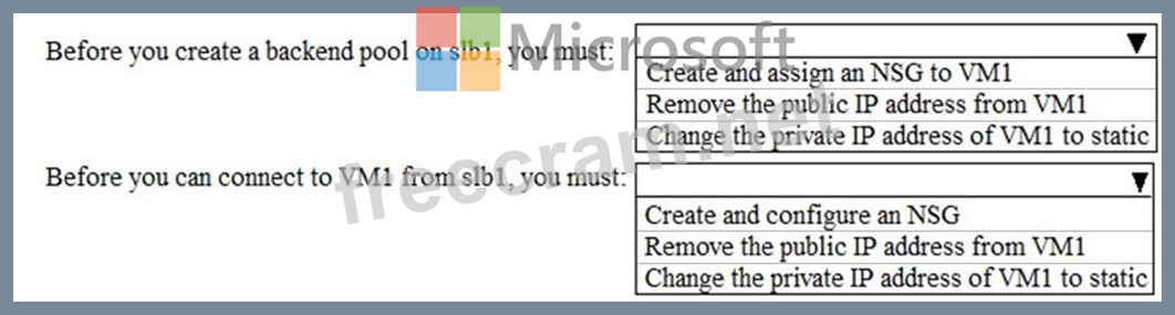 Which changes should you apply to VM1 as you configure slb1? To answer, select the appropriate options in the answer area.