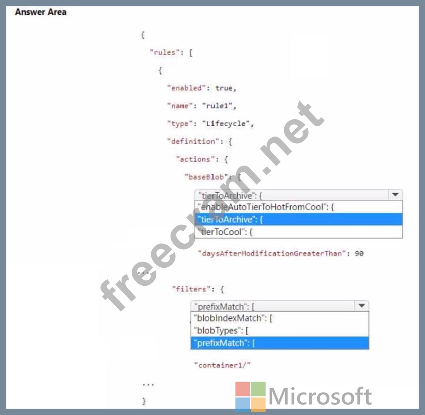 You need to create a lifecycle management rule for storage1 that will automatically move the blobs in contained to the lowest-cost tier after 90 days.
