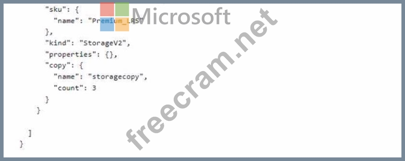 Question 63: You plan to deploy the following Azure Resource Manager (ARM...