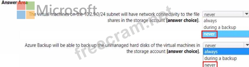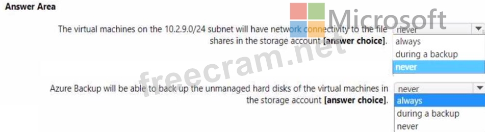 Question 129: You need to configure Azure Backup to back up the file share...
