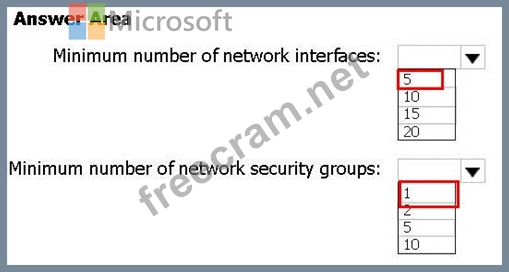 What is the minimum number of network interfaces and network security groups that you require? To answer, select the appropriate options in the answer area.