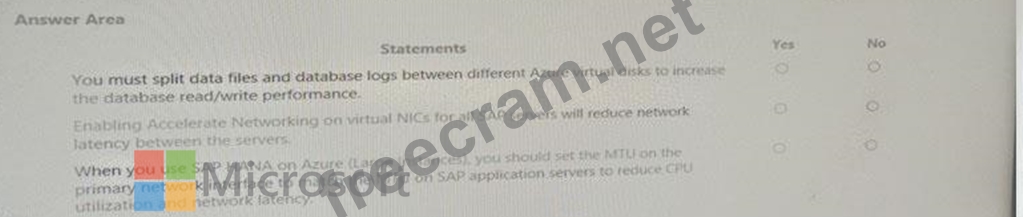 For each of the following statements, select Yes if the statement is true. Otherwise, select No. NOTE: Each correct selection is worth one point.