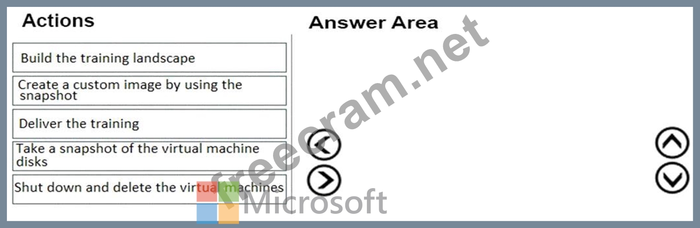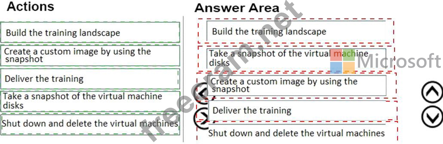 In which order should you recommend the actions be performed for the first training session? To answer, move all actions from the list of actions to the answer area and arrange them in the correct order.