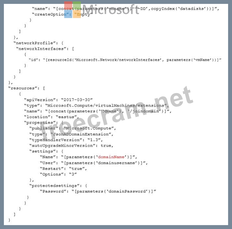 An Azure administrator provides you with the Azure Resource Manager template that will be used to provision the production application servers.