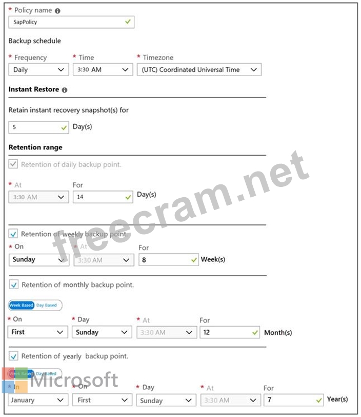 An Azure administrator proposes the backup policy shown in the following exhibit.