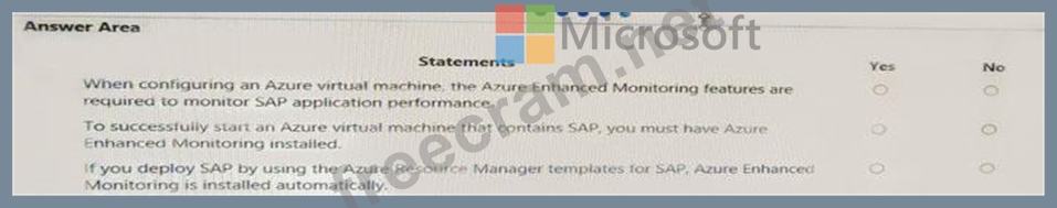 Question 11: You deploy on SAP environment on Azure. You need to monitor ...