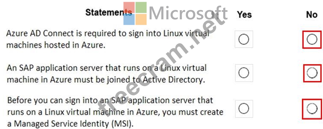 Question 100: HOTSPOT For each of the following statements, select Yes if ...