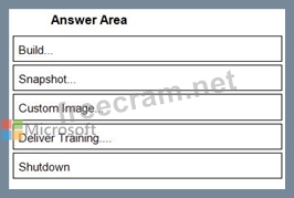 In which order should you recommend the actions be performed for the first training session? To answer, move all actions from the list of actions to the answer area and arrange them in the correct order.