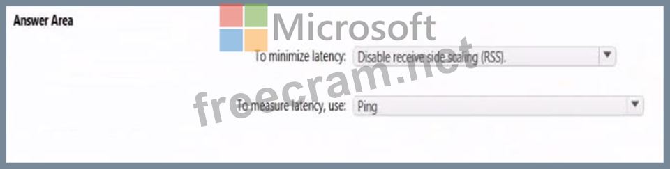 You are planning an SAP NetWeaver deployment on Azure. The database her will consist of Two Azure virtual machines that have Microsoft SQL Server 2017 installed. Each virtual machine will be deployed to a separate availability zone. You need to perform the following: * Minimize network latency between the virtual machines. * Measure network latency between the virtual machines. What should you do? To answer, select the appropriate options in the answer area.
